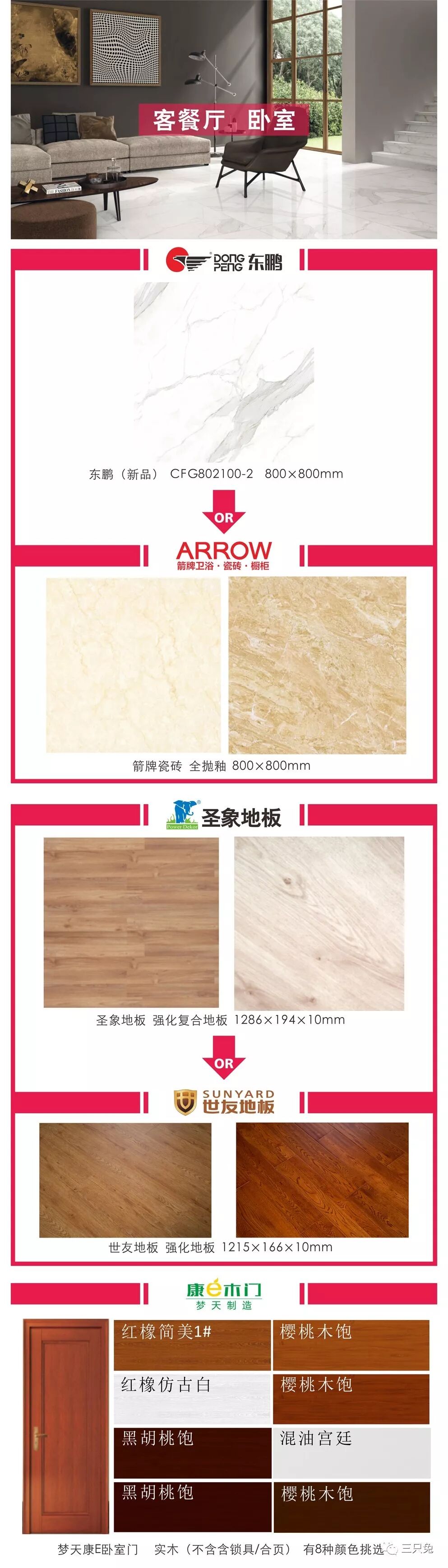 客餐厅/卧室地面瓷砖、木地板不限地面平方;地面瓷砖、木地板自由组合,我的地盘我做主!室内门限2扇。